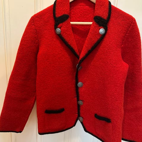 Ull jakke med rysjer. Rød. 38