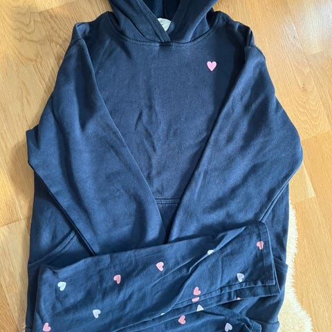 Meget pent brukt hettegenser og bukse fra New Yorker. Det står xs i plagget, men størrelsene er litt store. Vil si den lett går til small/medium.