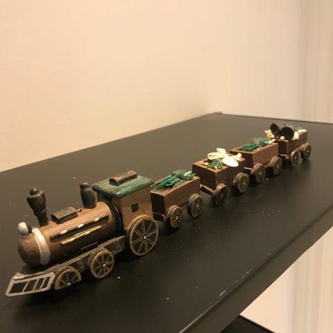 Tog, julepynt, vintage julepynt, Retro julepynt, julenisse, nisse, nissebarn, nydelig tog til en jul landsby med andre julehus og julekirker, jule dekorasjon.