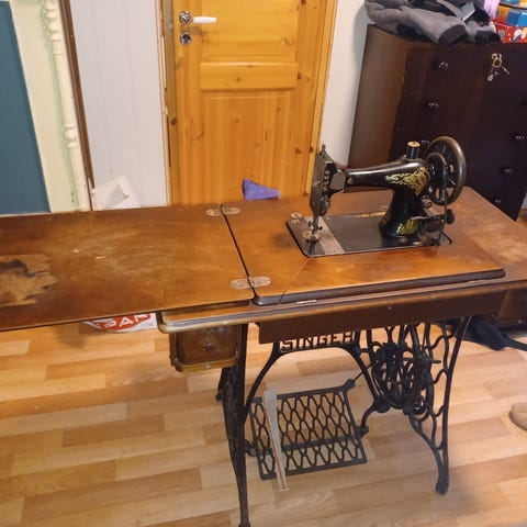 Gammel antikk symaskin gritzner med bord, se på bilder