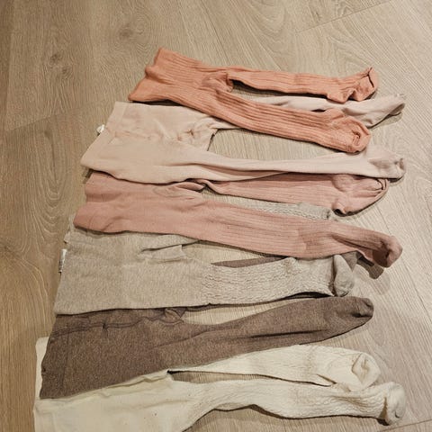 Fire strømpebukser fra hm og Cubus selges. Noen ubrukte og noen brukt en gang kanskje. I str. 62/68.