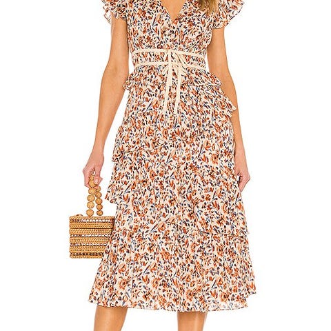Scandi label GANNI is beloved for its signature prints, and we love the romantic feel of the ditsy red florals on ‘The Anna’ dress from our capsule collection. Crafted from fluid crepe, it’s been designed in the brand’s signature wrap silhouette and falls to a tiered midi-length hem. Sophisticated and versatile, a dress like this works for a multitude of occasions.