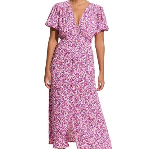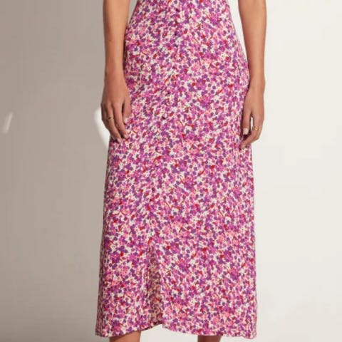 Flott lang kjole fra kapsulkolleksjonen til GANNI og The Outnet i 2021. Kjolen heter "The Anna" og er en omslagskjole laget av et blomstrete mønster som GANNI-elskere vil kjenne igjen fra Goldstone-serien. Denne midikjolen er sofiskitert og allsidig, og kan brukes til mange anledninger!