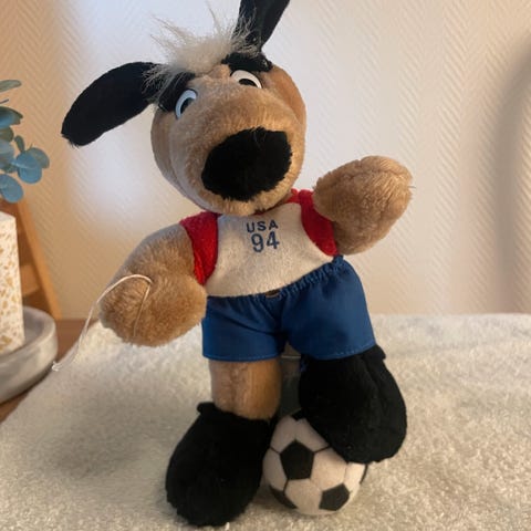 Kindereggfigur fra 1986 i veldig pen stand selges for 150kr. Pique - Maskott, Fotball-VM i Mexico -86. Svært sjelden. I skrivende stund ligger det to i samme tilstand ute på ebay til 23-35 Euro.