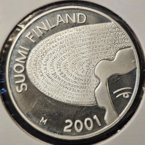 10 Euro sølvmynt utgitt 2002 i forbindelse med 50 års jubileet for Olympiaden i Helsingfors.