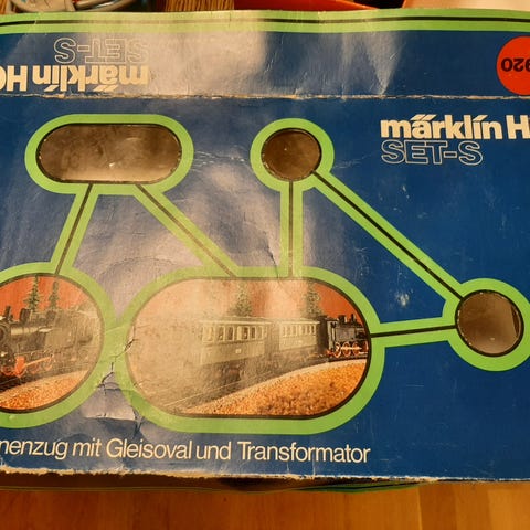 Marklin HO SET-S 2920 bestående av trafo, lokomotiv, 2 personvogner, 6 rette skinner og 12 svingskinner. 3 ekstra vogner (Shell tankvogn, tippvogn og stor biltransportvogn med 8 biler) samt tunell medfølger. Settet er fra 80-tallet, men pent brukt og i god stand. Hele settet er er nettopp satt opp og prøvekjørt, og alt fungerer perfekt. Selges samlet, ta kontakt for spørsmål og evt. flere bilder.
