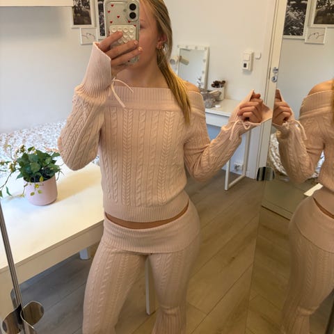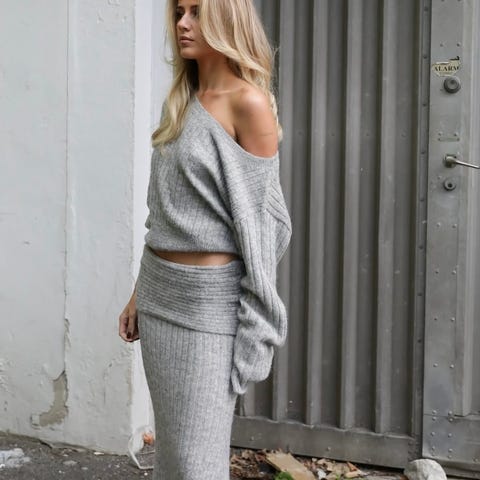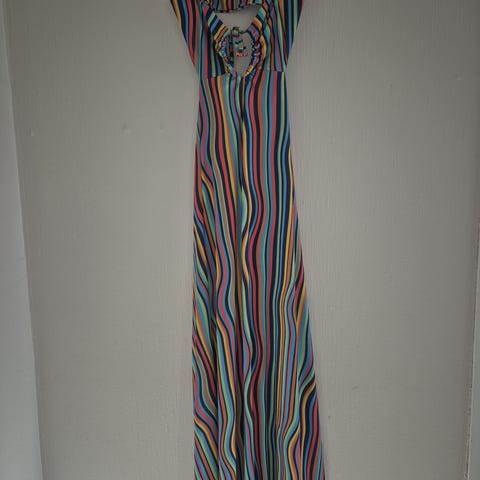 Denne maxikjolen er langermet og har en bodycon-passform og et ribbet stretch-materiale. Den har en brettet off-skulder-look og en åpen rygg.