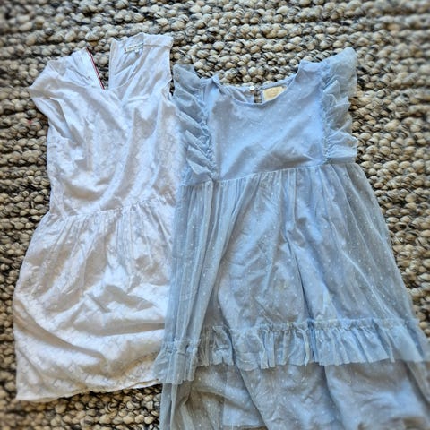 Blå blondekjole/penkjole/finkjole med bolero og tynn strømpebukse i str. 98/104.