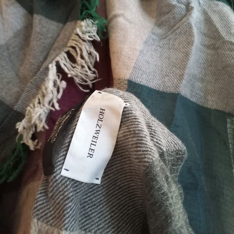 Pen gardigan med lommer, splitter på sidene, knepping med knapp på sidene, lengde 90cm