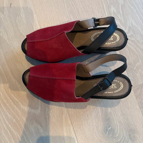Hæl: 4 tommer høy, håndskåret, lett trehæl.
