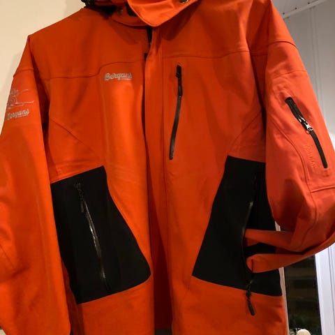 Klassisk rød anorakk til tur og ski fra Bergans. Damemodell i størrelse xxs, men romslig så vil passe xs og s også. Bomullsstoff som puster og er vindtett. Med hette, og lommer til oppbevaring foran. Jakken fremstår i pen tilstand.
