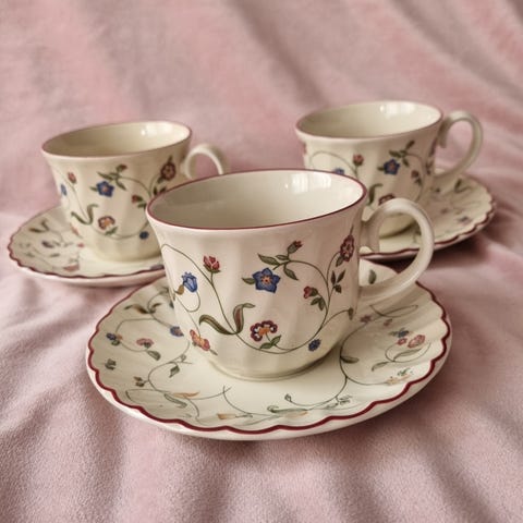 Klassisk og tidløst servise fra Adams England i det vakre mønsteret Old Colonial. Perfekt til kaffe- eller teselskap.