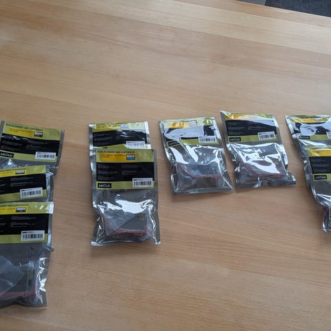 Den store svarte patronen som sitter i skriveren er tom. Resten er fulle.