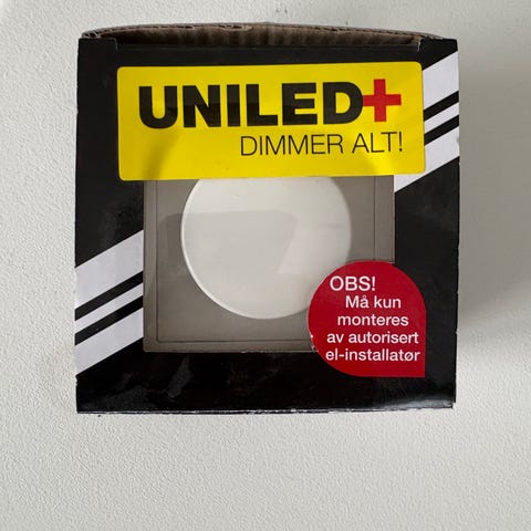 Universaldimmer for bruk med LED, elektroniske trafoer, og 230V halogen. Kun faseleder L – ikke N.