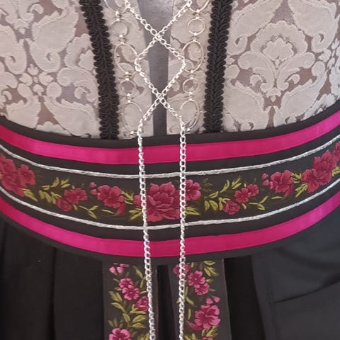 Meget billig sølvbelte til bunader selges, håndlaget i Gudbrandsdalen, alt ekte sølv. Passer de fleste bunader. Leveres i oksidert, hvitt eller forgylt sølv. Komplett ferdig montert med veskestøl , støler og spenne. 70 cm. Lager alle lengder, ta kontakt for eksakt pris på ønsket lengde. Kan leveres med spennen som vist på siste bildet for 400 kr ekstra. Alt ekte sølv. Ta kontakt for pris på ønsket lengde.