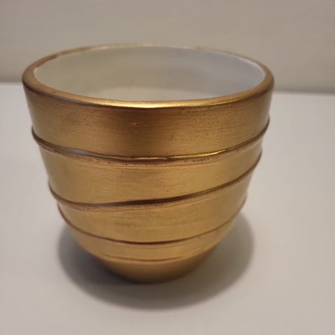 Bildet lyver litt mht fargen, blåfargen er nesten petroleumsblå og den er ikke gul, mer brungylden. Ingen hakk eller skader, litt krakelert inni.