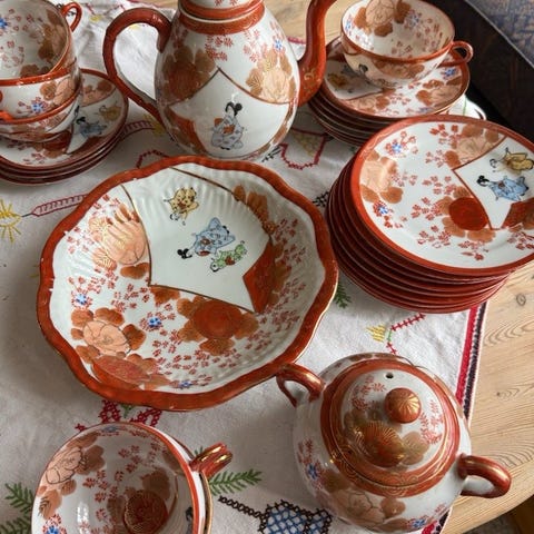 Japansk te servise selges. Er litt av hvert fra 2 serviser. Trenger en vask.