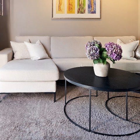 Puffen er kjøpt sammed med to sofaer, men tok for mye plass i stuen. Endte opp som klesoppbevaring på soverom. Er dermed å anses som ubrukt. Størrelse 45 x 60 x 90. Nypris 7.230,-