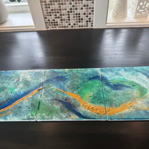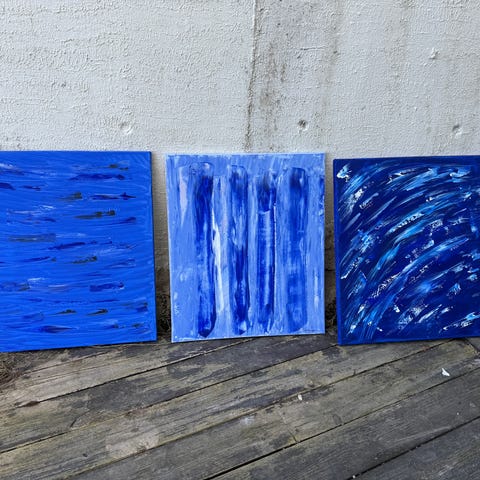 Disse malte jeg i 2021 og har hengt i gangen. Akryl på lerett. Pga. flytting har vi ikke plass til disse lengre.