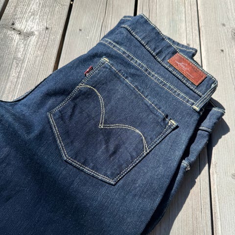 Veldig lite brukt. Vaskeanvisningen innvendig er klippet vekk, men bortsett fra det, er den hel og fin. Brukt noen få ganger. Str 29 Demi Curve Modern Rise Skinny. Se bilder