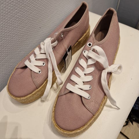 Som nye (kun brukt en gang) tøysko selges for 125,- Kjøpt nye via Stormberg sine nettsider. Selges fordi de er for store i størrelsen. Rosa/lilla i fargen. Fin til både bukser og kjoler.