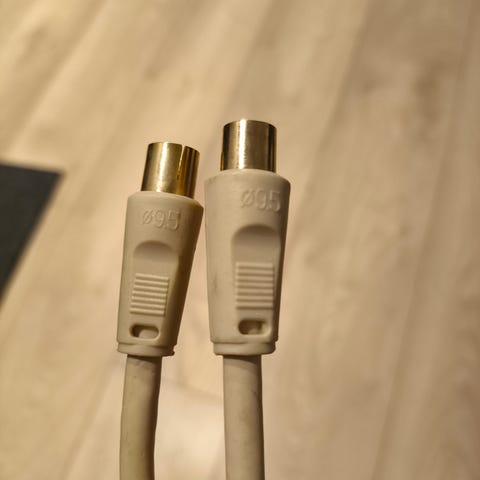 Comega signalforsterker / antenneforsterker med veggfeste selges. En inn, fire ut. Da koaksial erstattet av fiber, så er denne overflødig her. Vært benyttet for fordeling til tre tv-uttak fra koaksialinntak. Var "hønndyr" i sin tid.