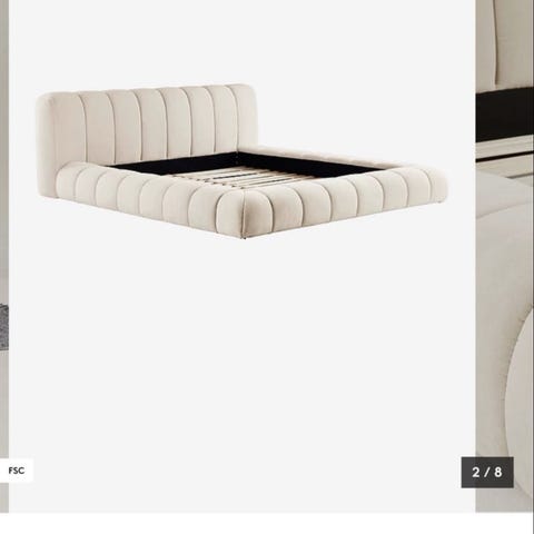 Ikke synlig brukt. Selges pga plassmangel: selve madrassplassen i sengen er 160 i bredde. Det er i tillegg 20 vm i ramme rundt på hver side, så du må ha plass til 200 cm i bredde og lende.