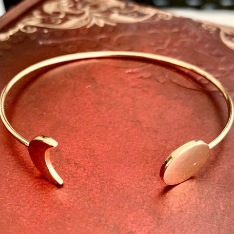 Her er et smykke med blå måne på den er laget av meg selv og er klar til bruk