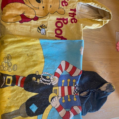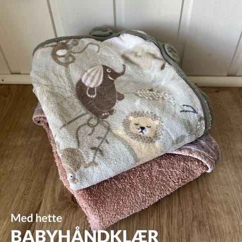To stk håndduker med hette. Selges samlet. De er mye brukt, så de er ikke kritthvite lenger. Men masse bruk igjen likevel. Ingen bruksmerker eller hull.