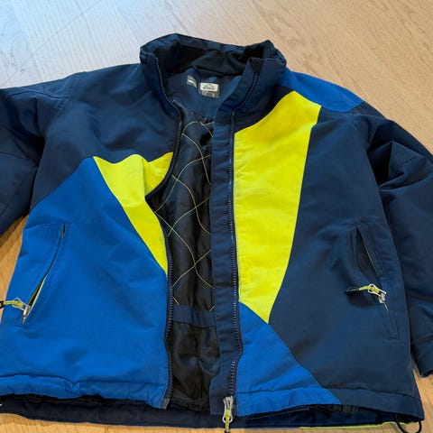 Mckinley vinterjakke størrelse 128. Vi har dessverre ikke hetten lenger. Snøsperre, den ene trykknappen mangler, se bilde :)
