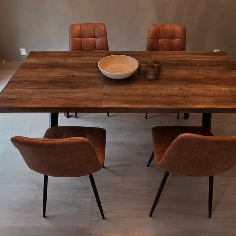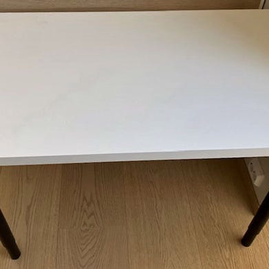 Spisebord med hvit plate og svarte ben 150 cm selges etter å ha blitt montert da det ikke passet til stolene.