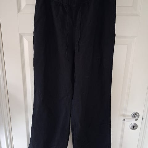 Sort Lin Bukse med snøring i livet. Sløyfe. ZARA