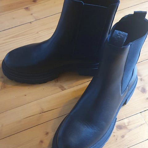 Selger sorte Rikke chelseaboots i skinn fra Sapatos i str 38, da de er litt store. Pent brukt 1 sesong. Ikke fóret, og romslige i str. Nypris kr 1 995.