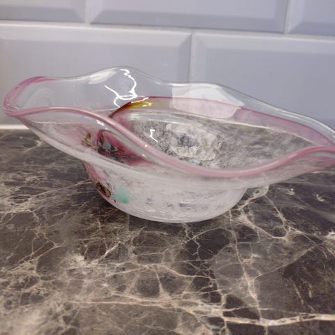 Flott stort fat for dekorasjon eller bruk fra AROL keramikkindustri rikt dekorert .