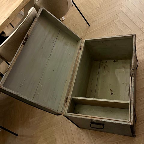 To gamle, solide trekister selges, kr 400 pr stk.