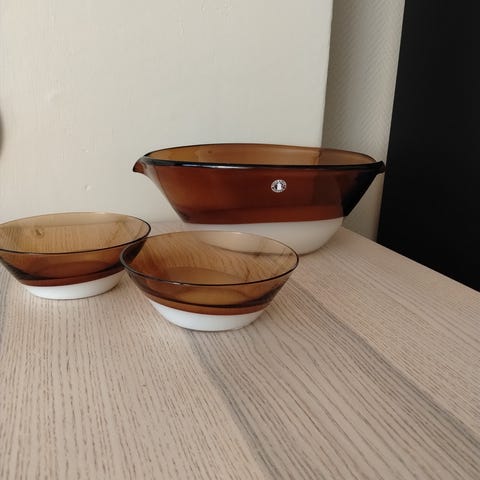 Kjekke skåler eller vaser i klart glass. Kan brukes til oppsatser, juledekorasjoner eller til oppbevaring av godteri eller tomater som her