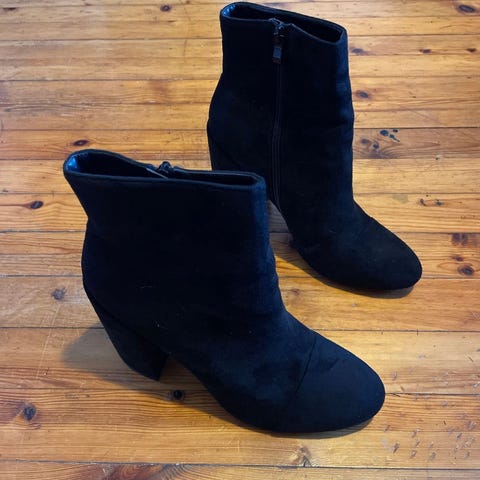 Nydelige ankelstøvler med 9 cm høy hæl. De er i utmerket stand (både overdel og såle), da de bare har blitt brukt noen få ganger. Jeg selger dem da de dessverre er for små for meg. Innsiden av hælen har blitt litt slitt, på grunn av kampen for å få plass til foten min inni før jeg ga opp og kjøpte en størrelse 39.