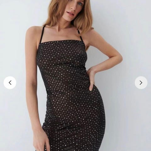 Kjole netting med gull detaljer og rhinestones. Onesize.