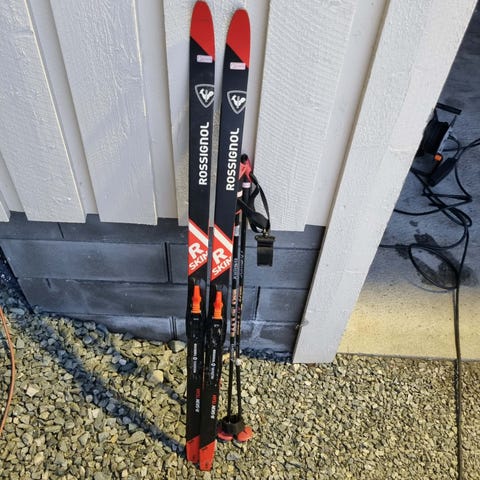 Full pakke Rossignol felleski, skisko og staver. Pent brukte. Sko strl 33