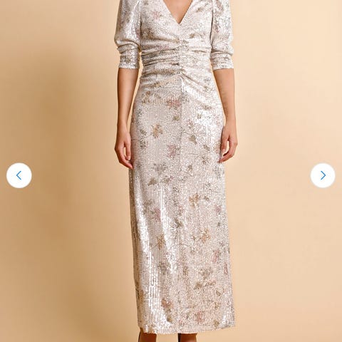 By Malina Cherie maxi sequin kjole i størrelse small. Selges ubrukt med prislappen på ettersom jeg kjøpte den i to forskjellige størrelser. Bilde nummer 3 og 4 viser meg i lik kjole i en annen størrelse.