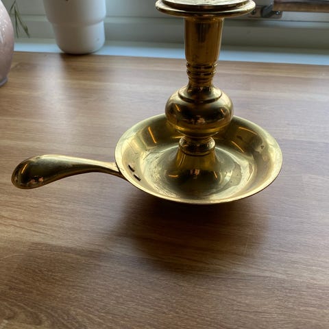 Messing lysestake selges. 33 x 23 cm. Veldig fin.