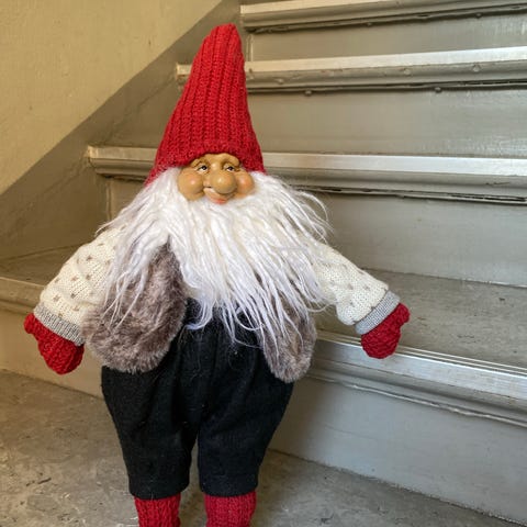 Søt nissegutt. Har noen bruksmerker på beina/skoene samt en liten rød flekk på kinnet. Et par sorte merker på luen, ellers veldig fin.