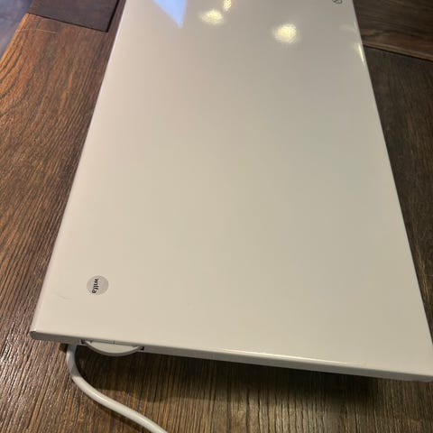 Panelovnen fulgte med leiligheten, men var aldri behov for den. Fremstår som en modernet panelovn med digitalt display med muligheter for dag/nattsparing.