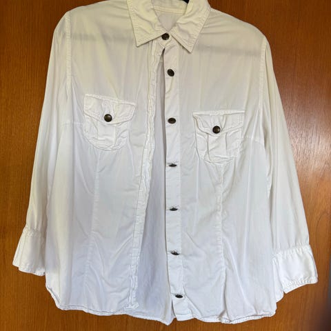 Veldig pent brukt skjorte fra Tom Wood i deilig viskose-kvalitet. Armen kan festes opp med liten rein eller være full lengde. Veldig deilig å ha på. Selges da den dessverre er litt for liten til meg.