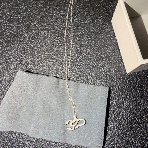 sort skinn fra Ole Lyngaard, med 3 charms, sølv, og hvitt gull med diamanter🌱🪷🪷🌱