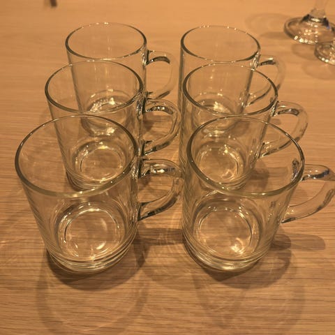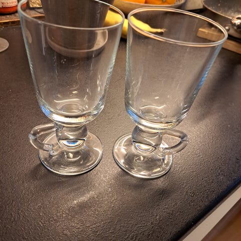 Fire helt supre glass til varme drikker. Fire ‘rørepinner’ i glass med kork til å holde i.