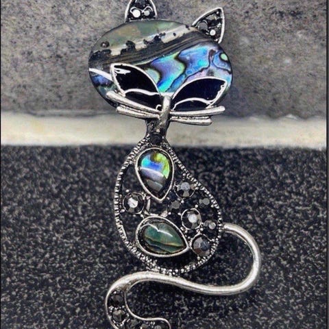 Morsom gullfarget nål "Kattepus i støvel" selges kr 75,-. 5,3 x 5,3 cm. Porto kommer i tillegg.