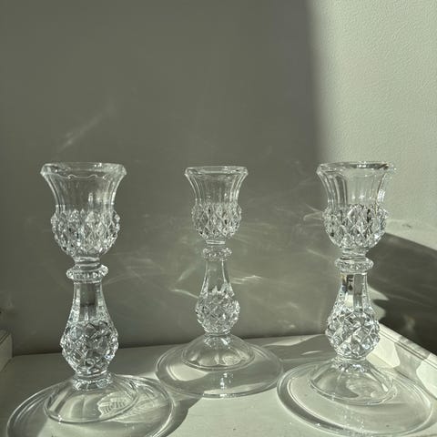 Lysestake med 3 armer i krystall selges, denne er veldig tung og massiv.