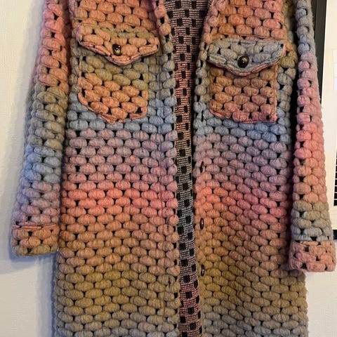 Heklet ullblandings jakke/ kåpe i fantastiske høst farver