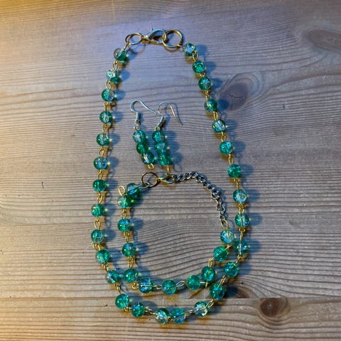 Håndlaget smykkesett av kobber og glass